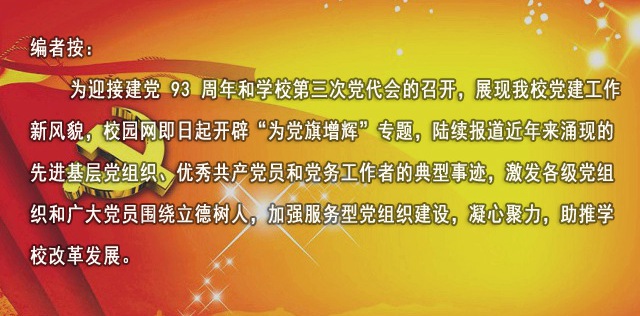 近年來,信息工程學院黨委堅持圍繞中心、服務大局,按照“教學立院、科技強院、黨建興院、管理塑院”的辦學思路,充分發(fā)揮學院黨委的政治核心作用、黨支部的戰(zhàn)斗堡壘作用和黨員的先鋒模范作用,緊緊圍繞立德樹人這一根本任務,創(chuàng)新人才培養(yǎng)模式改革,不斷提升學院核心競爭力,有效促進學院科學發(fā)展。2014年,信息工程學院黨委被評為全省高校先進基層黨組織。