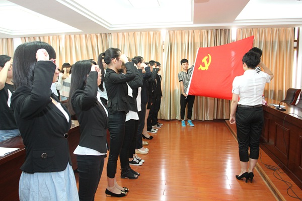 宣誓儀式在慷慨激昂的國際歌聲中正式開始。在市優秀黨務工作者、政治學院黨總支副書記黃薇的領誓下,100名新黨員緊握右拳,面對鮮紅的黨旗莊嚴宣誓,表達了入黨的愿望和遵守入黨誓詞的決心。