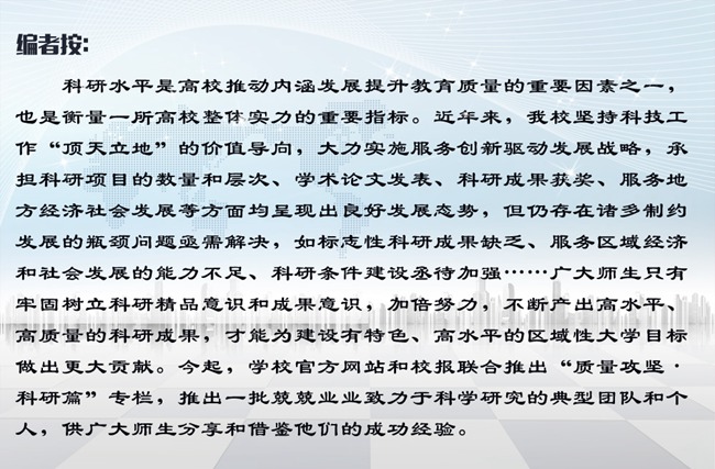 李慶峰研究員是我校物理學科發展的核心人物,是我校2008年引進的海外高層次人才。他先后入選錢江高級人才(省特聘教授)和省“151人才工程”第一層次培養人選;獲得國家自然科學基金3項、省部級基金4項;發表學術論文60余篇,其中大部分文章被SCI收錄;從2009年起至今擔任?!?+3”工程物理學科帶頭人;一手創設了湖州師院“物理沙龍——Tea Time” 。