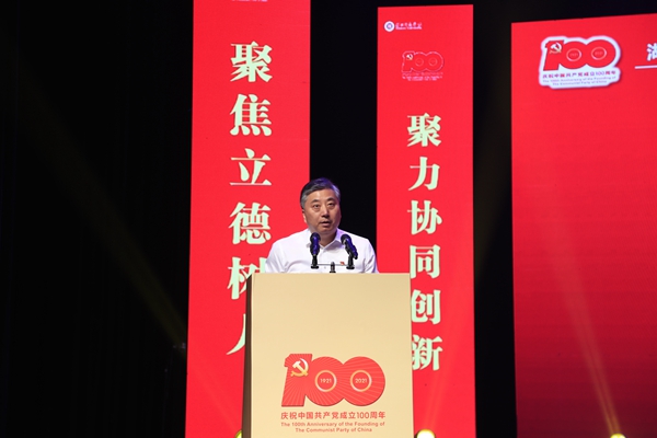 校黨委書記金佩華以《重溫百年輝煌路 砥礪奮進再出發 以高質量黨建引領推動學校高質量發展》為題發表講話。他指出,學校的命運是與民族和國家的命運息息相關的。學校必須始終堅持黨的全面領導,必須始終堅持社會主義辦學方向,必須始終堅持以實現民族復興、國家富強為己任。他表示,近年來,學校各項事業取得了較為豐碩的成果,黨的全面領導不斷加強、內涵式發展不斷提速、黨建引領示范成效不斷彰顯。當前,學校已經站在了新的歷史起點上,接下來一段時期,是完成習近平總書記重要囑托、實現“大學夢”的關鍵期,是貫徹校第四次黨代會精神、落實“三步走”戰略目標和“3918”戰略體系的關鍵期,也是學校由教學型向教學研究型大學轉型發展的關鍵期。