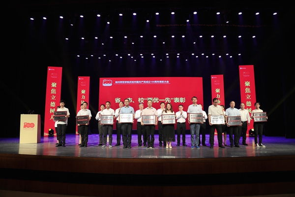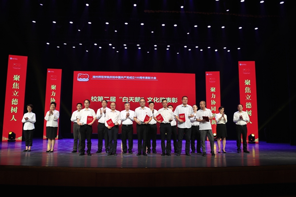 6月30日下午,學校在東校區會堂隆重舉行慶祝中國共產黨成立100周年表彰大會。校領導班子成員出席。黨員老領導,黨員中層干部、科級干部,“兩優一先”、第二屆“白天鵝”文化獎、校疫情防控工作先進集體和個人等受表彰對象,老黨員代表,師生黨員代表參加了本次大會。會議由校長蔣云良主持。