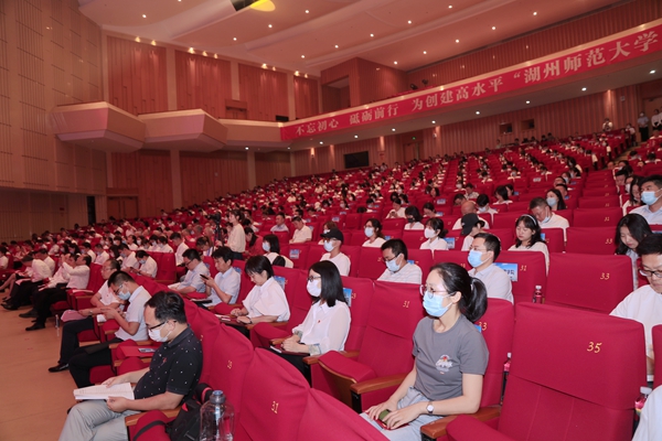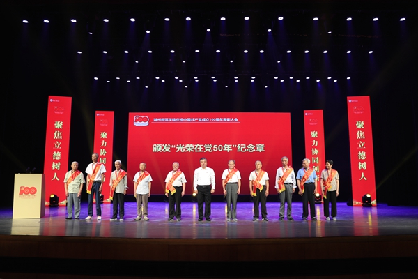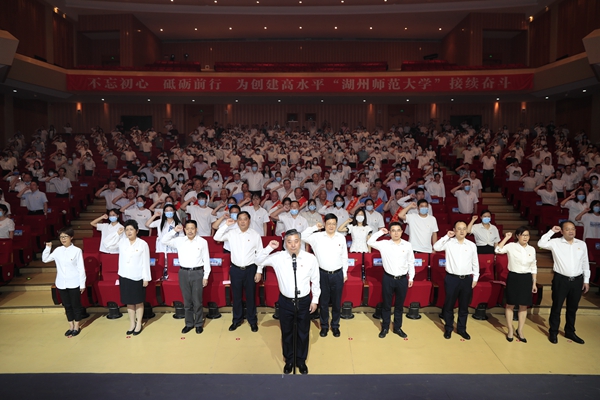金佩華強調,學校要牢牢把握奮進方向和聚力發展重點,要始終加強黨對人才工作的領導,要奮力走好創建高水平“湖州師范大學”的堅定步伐,要持續提高人才培養質量和社會服務水平,要切實加強黨的全面領導和黨的建設。他希望全校各級黨組織、全體共產黨員牢記使命、敢于擔當,在教學、科研、管理、服務、醫療衛生等各個崗位上發揮好戰斗堡壘和先鋒模范作用,團結帶領廣大師生員工,迎難而上、不懈奮斗,為學校發展作出新的貢獻。為此,他向師生黨員們提出了四點要求,一是要始終做到政治過硬,爭做習近平新時代中國特色社會主義思想的信仰者實踐者;二是要始終做到責任過硬,爭做學校事業發展的引領者推動者;三是要始終做到能力過硬,爭做各自工作領域里的有為者佼佼者;四是要始終做到作風過硬,爭做政治生態最優高校的建設者保護者。