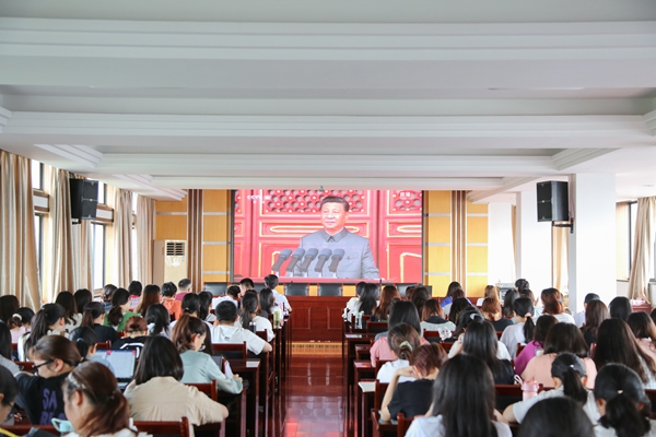 7月1日上午,慶祝中國共產(chǎn)黨成立100周年大會在北京天安門廣場隆重舉行。中共中央總書記、國家主席、中央軍委主席習(xí)近平發(fā)表重要講話。校領(lǐng)導(dǎo)班子成員帶頭觀看了大會的視頻直播,各二級單位積極組織師生進行了集體觀看。