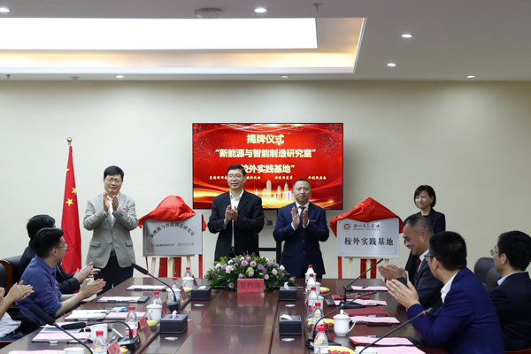 蔣云良和常清為“新能源與智能制造研究室”揭牌,工學院負責人和高銀為“校外實踐基地”揭牌。