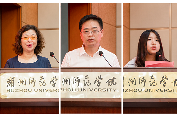 教師代表、學校第八屆“陸增鏞教師獎”獲得者、音樂學院安小梅教授在發言中表示,作為一名師院人,倍感自豪和驕傲。作為教師,要做到率先垂范、為人師表;要熱愛教育事業,擁有教育情懷,有愛心和耐心,更要有奉獻精神和實際行動。獲獎教師代表、浙江省第二十一屆哲學社會科學優秀成果獎一等獎獲得者、“兩山”理念研究院李學功教授結合自己的從教生涯和學術生涯表示,教師如春蠶吐絲始終堅守,傳道授業,見證并帶領著自己的學生書寫著光榮與夢想,奮斗與輝煌。身為教師、學者,個人的學術和崗位堅守十分重要。教師要為“教天地人事,育生命自覺”而不懈奮斗。