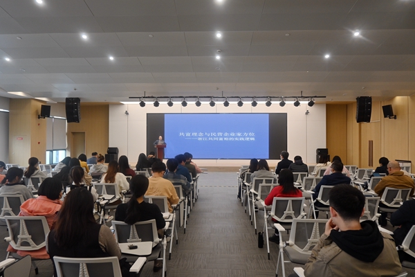胡宏偉教授以民營企業家定位為切入點,圍繞浙江共同富裕示范區建設與民營企業群體,從“共同富裕為何成為時代命題”“共同富裕示范區為什么是浙江”“浙商群體構建浙江共同富裕基石”“浙江踐行共同富裕的邏輯與方向”四個方面,深刻闡釋了浙江推進共同富裕的必然性和實踐邏輯。報告立足第二個百年奮斗征程,深入淺出,富有哲理性和說服力,不僅令在場師生深受啟迪,也為大家開展區域社會經濟研究拓寬了思路。