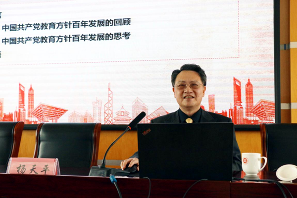 楊天平全面系統(tǒng)地梳理了中國共產(chǎn)黨教育方針的百年演變歷程。他選用豐富翔實(shí)的史料、國家領(lǐng)導(dǎo)人重要講話以及教育法規(guī)具體內(nèi)容,分析和闡述了每個歷史階段的教育方針,來進(jìn)一步展現(xiàn)其背后的發(fā)展軌跡。他把中國共產(chǎn)黨教育方針百年發(fā)展的歷程總結(jié)為“六個基本”:基本認(rèn)識、基本程序、基本特點(diǎn)、基本規(guī)律、基本結(jié)論和基本經(jīng)驗(yàn),并對這六個方面進(jìn)行了深入說明。楊教授以嚴(yán)謹(jǐn)深厚的學(xué)術(shù)研究,為在場師生展現(xiàn)了一部百科全書式的教育方針演進(jìn)嬗變史,一部完整的馬克思主義教育思想中國化的創(chuàng)新發(fā)展史。