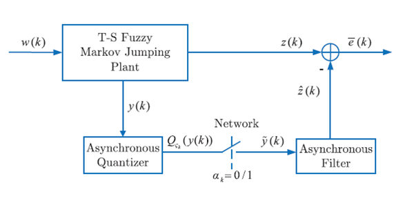 Markov跳變系統作為一類特殊的混雜系統,因其簡單的數學描述形式和對實際系統強大的建模能力得到了學術界和工業界的青睞,在電力系統、航空航天系統等眾多工程領域得到了廣泛應用。在研究Markov跳變系統時,基于隱Markov模型考慮異步的綜合方法可以有效克服實際系統中模態難以精確獲得的困難,但同時又充分利用了可用的模態信息,可有效降低結論的保守性。該文章研究了一類具有丟包的網絡化Takagi-Sugeno模糊Markov跳變系統的耗散異步濾波問題。系統測量采用對數量化器進行量化,并引入一種新的伯努利丟包模型來處理量化器至濾波器之間的丟包現象。濾波器、量化器和系統之間均是異步的,異步關系分別由兩個隱Markov模型描述。通過采用模態和模糊規則依賴的Lyapunov函數方法和適當的矩陣不等式變換技術,得到了可使濾波誤差系統隨機均方穩定且具有一定耗散性能的異步濾波器設計方法。與現有方法相比,文章中所提出的設計方法可有效提高系統的濾波性能。