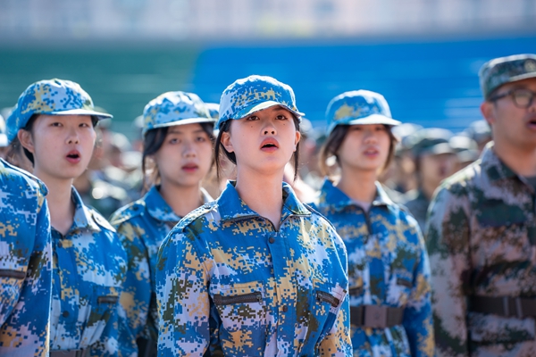 最后,全體師生齊唱《強軍戰歌》。站在軍訓橫軸的終點,大家以聲做墨,寫下軍訓日記墨跡濃重且筆力遒勁的一筆。