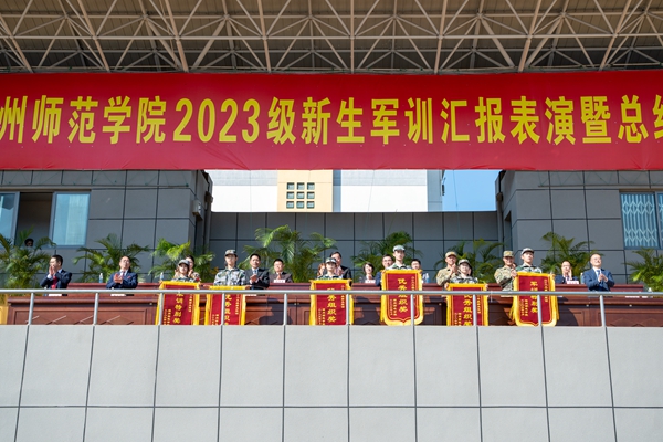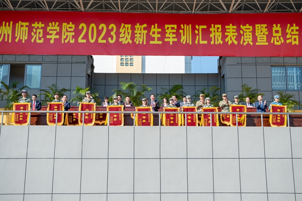 舒志定宣讀軍訓各類獎項獲獎名單。理學院、信息工程學院、教師教育學院、工學院、音樂學院和經濟管理學院獲得優秀方陣;馬克思主義學院、經濟管理學院和體育學院獲得內務優勝學院;教師教育學院、外國語學院、馬克思主義學院、醫學院/護理學院、工學院和理學院紅歌比賽獲獎;安定書院、人文學院、藝術學院和生命科學學院獲得精神風貌獎;經濟管理學院、教師教育學院、理學院和信息工程學院獲得優秀組織獎;音樂學院和體育學院獲得軍訓特別獎。主席臺領導為獲獎代表頒獎。