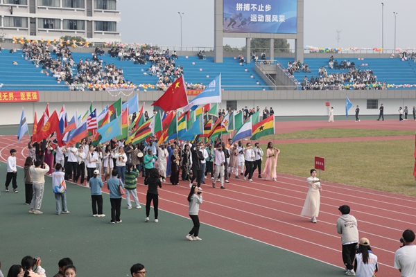 繼續(xù)教育學(xué)院方陣精神飽滿,以整齊有力的步伐展現(xiàn)著昂揚(yáng)向上的風(fēng)貌;國際學(xué)院的留學(xué)生們身著各國服飾,以異域風(fēng)情的舞蹈展現(xiàn)著民族特色,充分體現(xiàn)了各國學(xué)生之間團(tuán)結(jié)一心的凝聚力;體育學(xué)院健美操表演和舞龍舞獅表演將開幕式推向高潮,熱鬧的旋律和復(fù)雜的動作,體現(xiàn)了體院人的激情與活力。