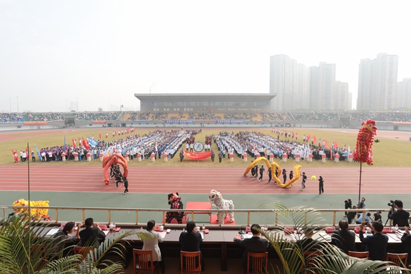 在全校師生們熱烈歡呼聲中,金佩華宣布我校第二十五屆運(yùn)動會開幕。