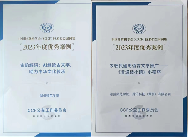 近日,中國計算機學會(CCF)公布了2023年CCF技術公益優秀案例評選結果,我校信息工程學院祁亨年教授領導的研究生導學團隊兩項成果脫穎而出,成功入選。這兩項成果分別是“古韻解碼:AI解讀古文字,助力中華文化傳承”和“農牧民通用語言文字推廣——《普通話小鎮》小程序”。