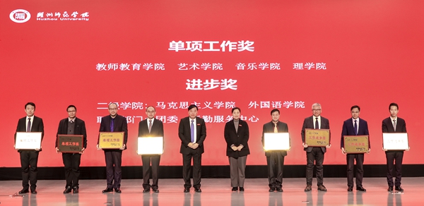 會(huì)議對(duì)2022年國(guó)家級(jí)教學(xué)成果獎(jiǎng)獲得者、學(xué)校2023年度工作先進(jìn)單位、單項(xiàng)工作獎(jiǎng)和工作進(jìn)步獎(jiǎng)年度獲獎(jiǎng)單位進(jìn)行表彰;對(duì)省市2023年度重點(diǎn)工作成績(jī)突出集體和個(gè)人進(jìn)行表?yè)P(yáng)。校黨委副書(shū)記陳永華宣讀表彰表?yè)P(yáng)文件。