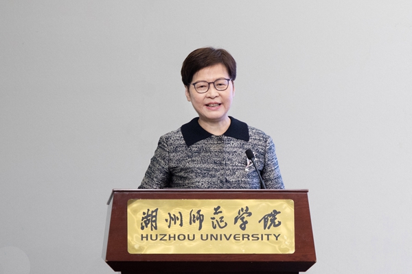 4月28日上午,香港特別行政區(qū)第五任行政長官林鄭月娥女士到訪我校,作專題報告并與師生代表互動交流。湖州市委常委、統(tǒng)戰(zhàn)部部長潘友明,全國政協(xié)委員、香港浙江省同鄉(xiāng)會聯(lián)合會會長詹洪良,浙江省政協(xié)委員、香港浙江省同鄉(xiāng)會聯(lián)合會常務(wù)副會長、湖州旅港同鄉(xiāng)會會長顧偉誠,浙江省政協(xié)委員、香港浙江省同鄉(xiāng)會聯(lián)合會副會長、香港嘉興同鄉(xiāng)會會長程奇,上海交通大學(xué)教授許泓,省委統(tǒng)戰(zhàn)部港澳臺處二級調(diào)研員章豐華,湖州市委統(tǒng)戰(zhàn)部常務(wù)副部長吳焱國等陪同來訪。我校黨委書記金佩華,黨委副書記陳永華,黨委委員、組織部統(tǒng)戰(zhàn)部部長勞士健,湖州中學(xué)副校長竺斌出席活動。我校師生代表和湖州中學(xué)文科創(chuàng)新班師生等150余人聆聽報告。