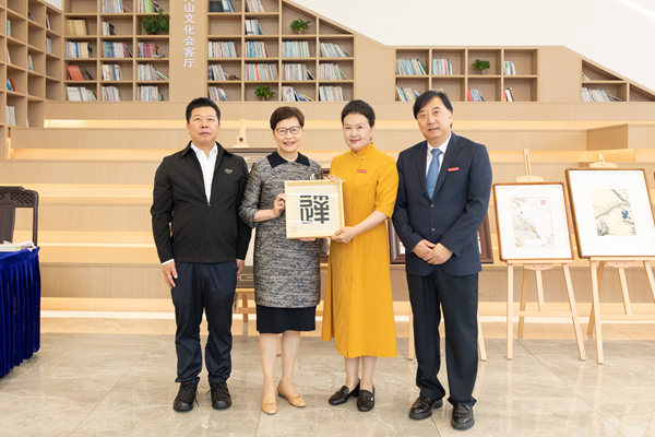 報告會前,林鄭月娥女士一行參觀了我校“古董刺繡”展、踐行“兩山”理念展示館。