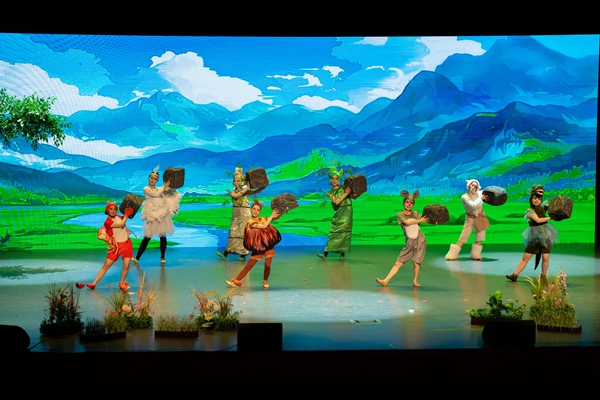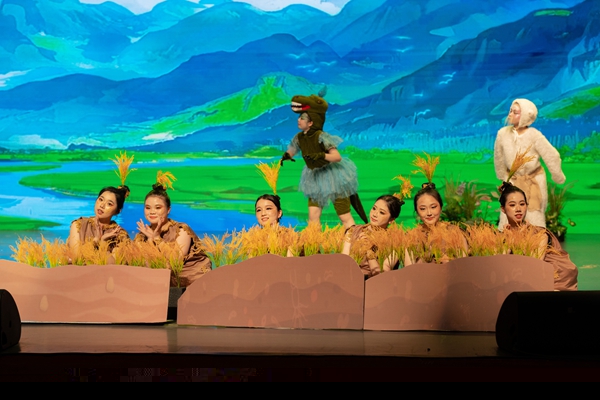 《溇港的一顆種子》主要講述了主人公稻香香來到溇港,和當地的小動物們——湖羊爺爺、白鷺姐姐、毛腳蟹、揚子鱷妹妹、田鼠賽賽等,齊心協力與赤鏈蛇作斗爭,利用湖州“桑基文化”的智慧,共同打造適合水稻生長環境的故事。該劇以兒童視角打開湖州故事,引導小朋友們體驗不同的人物情感,促進其情感認知的成熟,配合著絢麗多姿的舞蹈編排、璀璨奪目的燈光秀以及演員們深情投入的演繹,為現場觀眾們呈現了一場精彩絕倫的視聽盛宴。