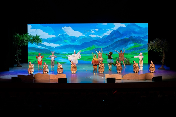 同時,該劇巧妙地將湖州獨有的“桑基文化”融入劇情——“溇港圩田”“桑基魚塘”“兩山”理念等湖州元素經過藝術加工和生動演繹,以更加通俗易懂地方式展現在兒童面前,潛移默化地將湖州文化精神傳遞給在場所有觀眾。劇中特別展示了“縱溇橫塘”農業生產方式的形成過程,讓大家對這項“世界灌溉工程遺產”有了更多的了解。