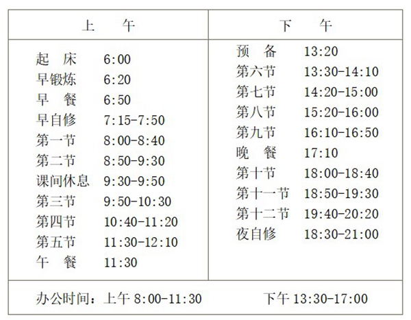 附:冬季作息時間表