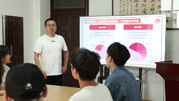 在肖漢杰看來,學(xué)科競賽與科研探索是一體的。他十分重視對學(xué)生創(chuàng)新能力的培養(yǎng),鼓勵學(xué)生積極參加國創(chuàng)賽、省級A類競賽等各類高水平賽事,并指導(dǎo)帶領(lǐng)學(xué)生參加。在指導(dǎo)過程中,肖老師十分重視團隊建設(shè)和制度建設(shè),要求以老帶新,將章節(jié)責(zé)任落實到學(xué)生個人。肖老師認真負責(zé),每周都會就具體文本制作技術(shù)、圖片繪制方法、PPT答辯等問題,與學(xué)生進行詳細探討。