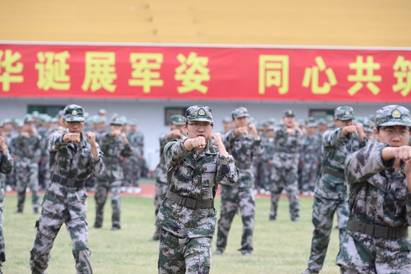來自體育學院的學生帶來了緊張激昂的戰術表演,沉浸式演繹軍訓版絕地逢生。他們在訓練場上穿梭如獵豹,行動敏捷而果斷。每一個戰術動作都充滿力量感,仿佛真的置身于激烈的戰場之中。他們用汗水與拼搏,展現出湖師體育人的堅韌與勇毅,為軍訓增添了一抹別樣的精彩與震撼。