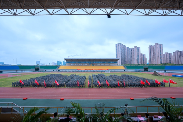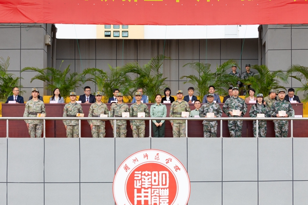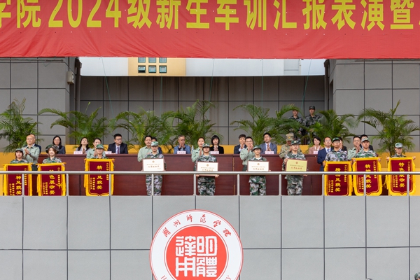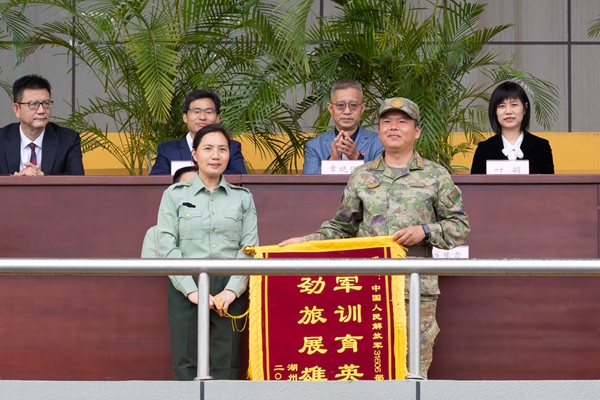 許慧霞向軍訓教官和教導員代表贈送榮譽獎章,向承訓部隊贈送錦旗。她代表學校向承訓部隊表示感謝,向從事軍訓組織和保障工作的各位老師致以誠摯問候,向2024級全體新生表示祝賀。她充分肯定同學們在軍訓過程中的出色表現,并希望大家心有所向,在擔當中實現個人價值,把對國家的大愛化作我們日常生活中的點滴實際行動;信有所依,在陪伴中走好成長之路,相互支持,團結協作,共同為實現我們的目標和夢想而努力奮斗;行有所至,在磨礪中擦亮青春底色,強健體魄,錘煉意志,為今后幾十年的健康學習工作生活打下堅實基礎。