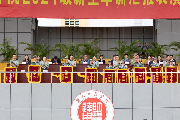 舒志定宣讀軍訓各類獎項獲獎名單。其中先進個人339名、文明寢室160間;優秀組織獎4個,優秀方陣6個,內務優勝學院3個,紅歌比賽獲獎學院7個,拔河比賽獲獎學院6個,特色展示獎2個,精神風貌獎4個。主席臺領導為獲獎集體代表頒獎。