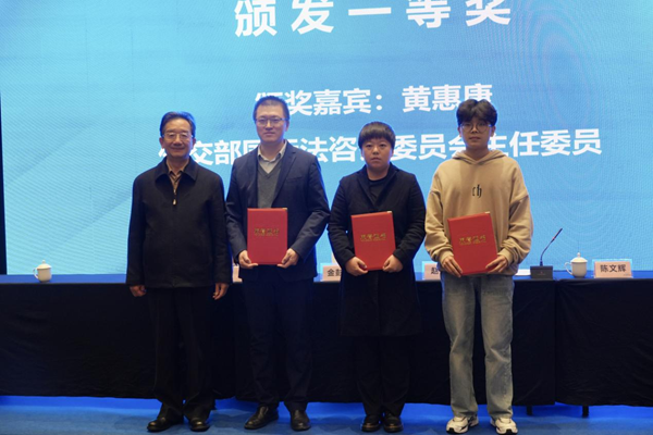 為進一步鼓勵和培養涉外法治建設人才,在經過精心挑選和評審工作后,此次大會對28位獲獎論文的專家學者及師生們進行表彰。胡銘、徐曉波、黃惠康分別為一、二、三等獎的作者頒發了獲獎證書。