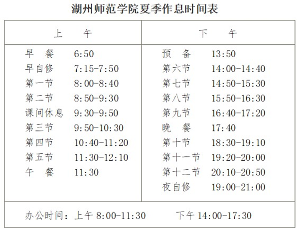 根據學校作息時間安排,自5月6日(星期二)開始實行夏季作息時間表,請各單位做好通知工作,確保調整作息時間后學校各項工作正常有序開展。