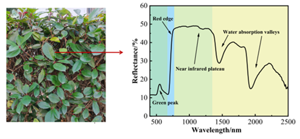 同色、同譜、耐候性等問題都在一定程度上受到光譜谷的影響。水谷的模擬通?;谥参锏奶卣鞴庾V,因為水通常被認為是影響植物葉片近紅外光譜響應的主要因素。近紅外波段中的吸收基團類型證實,1450nm左右的綠色植被吸收帶對應于-OH的第一諧波產生,1940nm左右的吸收帶歸屬于-OH的組合頻率。因此,有效的近紅外光譜模擬材料必須具有-OH的特征峰。