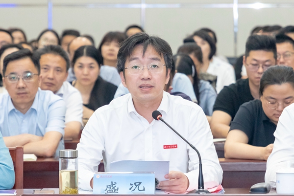 我校副校長(主持行政日常工作)盛況在致辭中簡要回顧了學校109年的辦學歷程,介紹了學校近年來在人才培養、學科建設、科研創新、服務地方等方面的辦學成績。他強調,本科教育教學審核評估是對學校辦學水平、人才培養質量的全面檢驗,更是推動學校深化改革、提升內涵發展的重要契機,全校上下高度重視此次評估工作,將以最誠懇、最積極的態度全力配合專家組的各項工作。他代表學校鄭重表態:提高站位,客觀真實展現學校本科教育教學現狀;全力配合,確保審核評估各項工作順利開展;虛心接納,積極構建質量提升長效機制。學校將以此次審核評估為契機,進一步完善學校內部質量保障體系,推動學校教育教學質量和整體辦學水平再上新臺階,爭取早日建設成為“在國內有一定影響、一定水平、一定地位的湖州師范大學”。