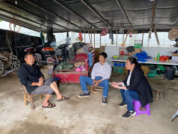 ▲唐瓊英(右)調研養殖戶
