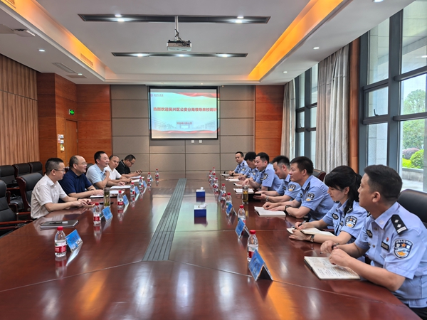 7月11日,吳興區公安分局黨委委員、副局長楊旭一行蒞臨我校調研指導平安校園建設工作。校黨委委員、組織部部長勞士健,安全保衛部部長季志及相關人員參加座談交流。