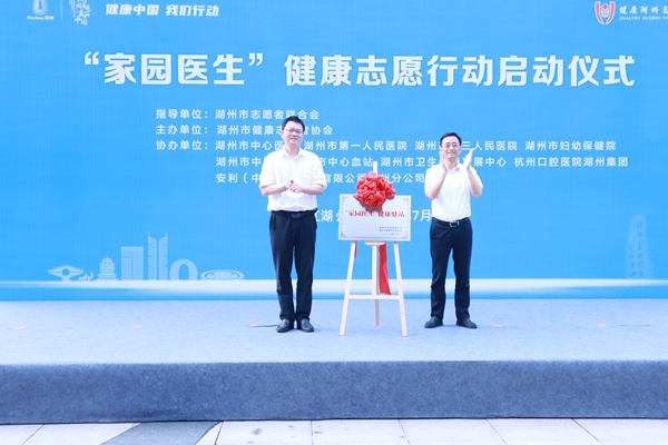 健康有約,志愿同行。7月14日下午,湖州市“家園醫生”健康志愿行動啟動儀式在愛山廣場墨香坊舉行。我校醫學院(護理學院)黨委書記甘順良、黨委副書記董建新帶領師生代表受邀參加。
