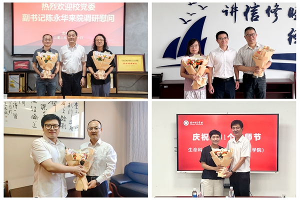 每到一處,校領導為教師代表送上鮮花,感謝他們為學校事業發展做出的貢獻。交流中,校領導關切地詢問了教師們在教學、科研、生活等方面的情況,并征求對學校發展的意見建議。校領導表示,學校的發展離不開全體師院人的辛勤奉獻,希望全體教職工繼續傳承和弘揚師院精神,凝心聚力,銳意進取,為學校高質量發展貢獻更大力量。教師代表們感謝學校的關心,表示將堅守教育初心,潛心立德樹人,為學校和社會培養更多優秀人才。