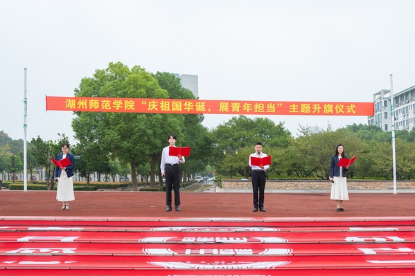 儀式在全體師生齊聲高唱《歌唱祖國》的激昂旋律中圓滿落幕,以深情歌聲抒發對祖國的熱愛,以實際行動踐行“明體達用”校訓,為建設高水平湖州師范大學貢獻青春力量的堅定決心。