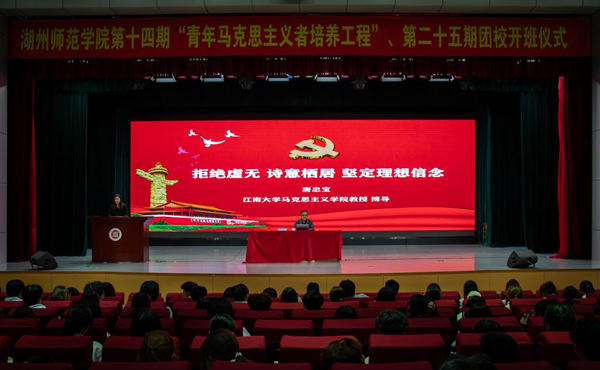 11月5日,我校在大學(xué)生活動中心舉行浙江省新世紀(jì)人才學(xué)院湖州師范學(xué)院分院第十四期青年馬克思主義者培養(yǎng)工程暨第二十五期團(tuán)校開班儀式。校黨委副書記丁敢真出席,組織部、學(xué)工部、團(tuán)委相關(guān)負(fù)責(zé)人,相關(guān)學(xué)院副院長、副書記、團(tuán)委委員,青馬學(xué)員和團(tuán)校學(xué)員等800余人參加。