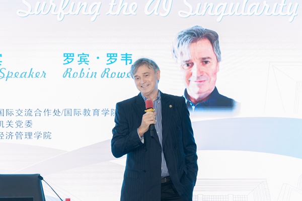 11月7日,國(guó)際知名人工智能專家羅賓·羅韋(Robin Rowe)先生應(yīng)邀做客我校,舉辦了題為“逐浪·奇點(diǎn):人工智能時(shí)代的機(jī)遇與挑戰(zhàn)”的學(xué)術(shù)報(bào)告。本次報(bào)告會(huì)由國(guó)際交流合作處/國(guó)際教育學(xué)院、機(jī)關(guān)黨委、經(jīng)濟(jì)管理學(xué)院聯(lián)合主辦。報(bào)告會(huì)前,副校長(zhǎng)李慶峰會(huì)見了羅韋先生,雙方就人工智能領(lǐng)域的教育與研究合作進(jìn)行了交流。