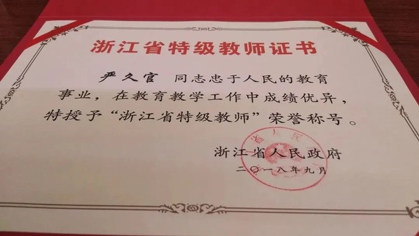 嚴久官,湖州師范專科學校(現湖州師范學院)9312班學生,現任教浙江省衢州旅游學校,浙江省語文特級教師、正高級教師,曾獲全國黃炎培職業教育“杰出教師”。