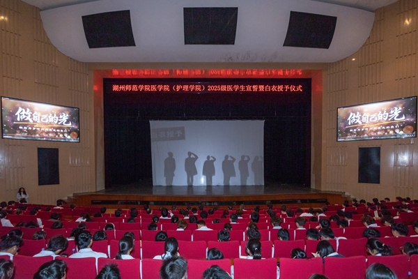 11月12日下午,我校2025級醫(yī)學(xué)生宣誓暨白衣授予儀式在東校區(qū)會堂舉行。校黨委副書記丁敢真,湖州市衛(wèi)生健康委副書記、副主任胡小軍,優(yōu)秀校友代表,附屬第一醫(yī)院、附屬中心醫(yī)院領(lǐng)導(dǎo)和醫(yī)護代表,校黨委宣傳部、學(xué)工部、團委等部門負(fù)責(zé)人,醫(yī)學(xué)院(護理學(xué)院)領(lǐng)導(dǎo)班子、系部主任、師生代表、2025級全體醫(yī)學(xué)新生近500人參加。
