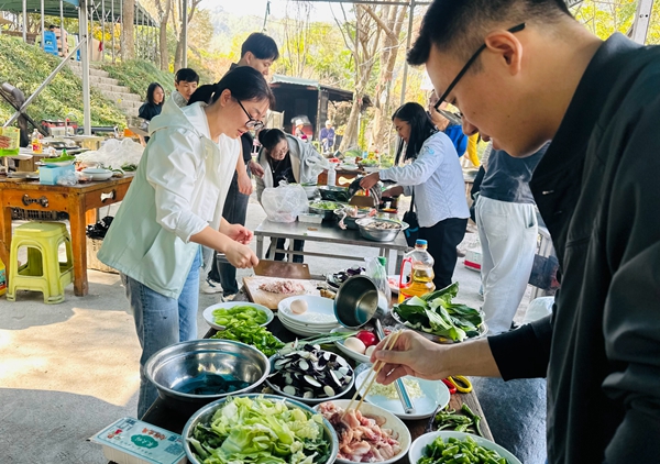 活動中,教師們踴躍參與了騎馬、滑草、射箭等多項趣味運動,在馳騁與滑行中釋放壓力,萌寵樂園的互動更帶來陣陣歡笑。中午時分,大家分工協作、自助燒飯,從切配到烹飪默契配合,在親手制作與共享佳肴中拉近了彼此距離。